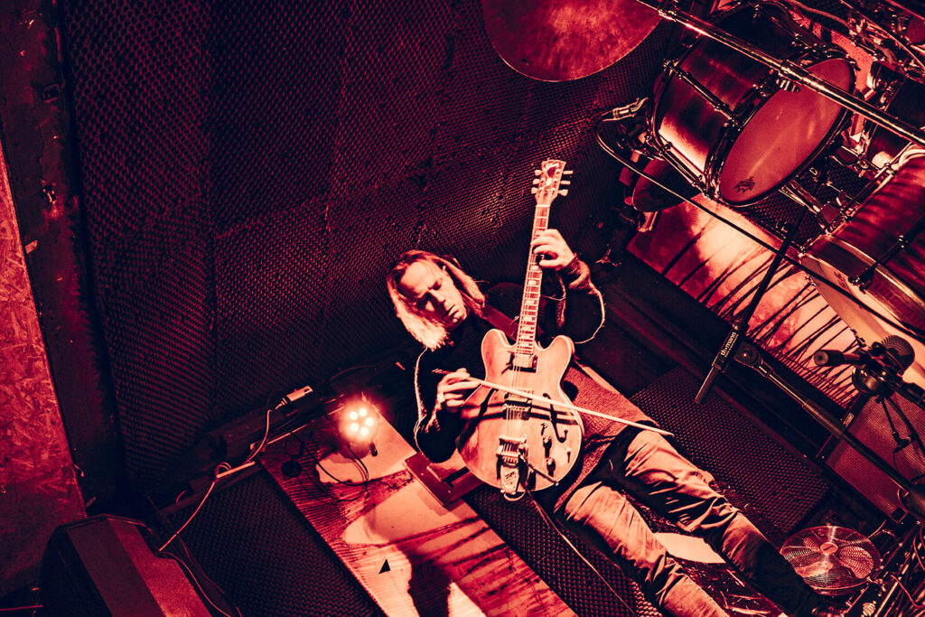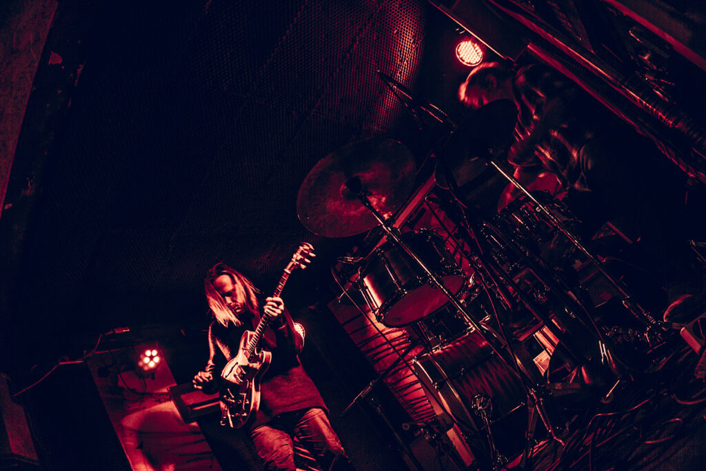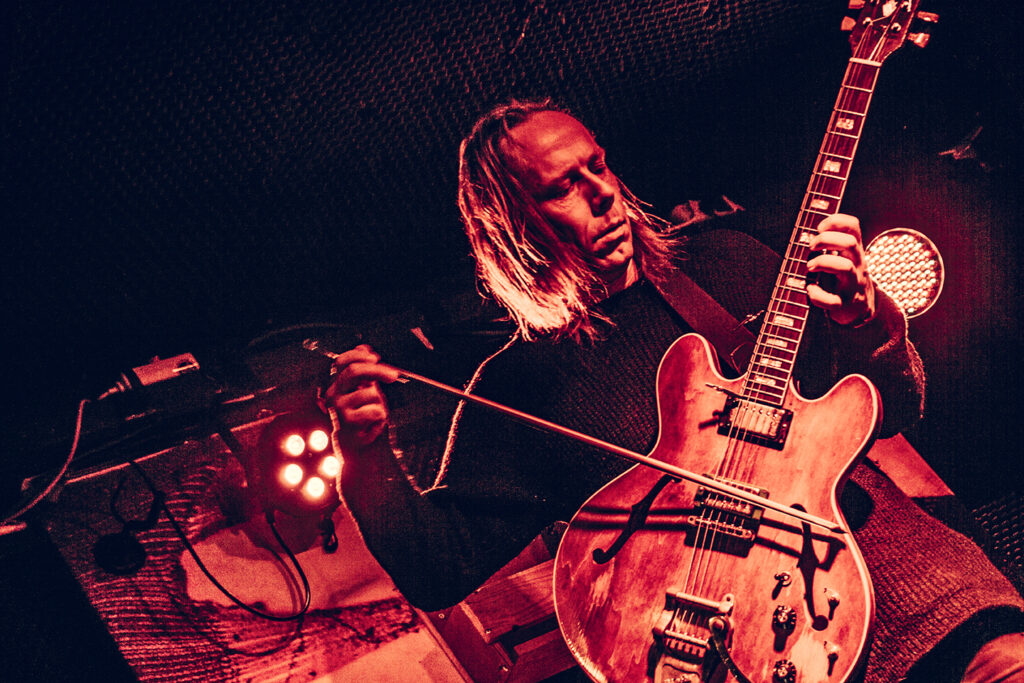 Er was weinig volk, maar dat deerde niet. Ze voerden het (letterlijk) onderkoelde publiek mee in een sonische trip. Gitaarklanken botsen en klotsen, terwijl drums richting alle hoeken van de kamer uitgingen. En dan werd het even stiller en Stian nam de strijkstok. Of zong door zijn pickups. Engelengeluid en het begin van een nieuwe muzikale reis langs onontgonnen gebieden.