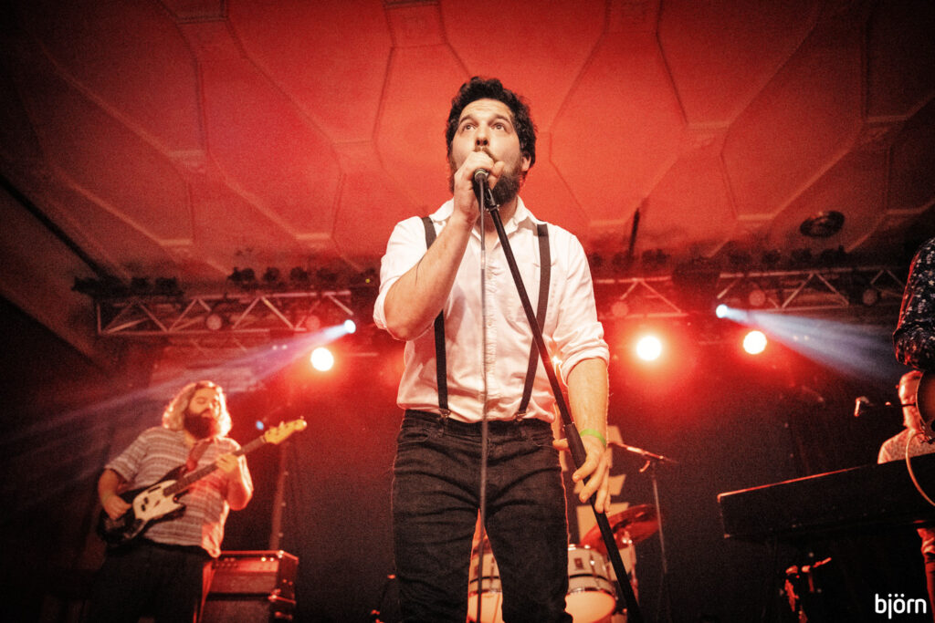 Op 8 december stond de band voor een uitverkochte Balzaal in de Vooruit/viernulvier (neen, we zijn er nog steeds niet uit hoe het de vork nu precies in de steel zit), klaar om hun roodvinyllen eersteling aan het publiek voor te stellen. Maar vooraleer de talrijk opgekomen fans de oerkreten van Bram Baele de gehoorgang ingestuwd kregen, was het eerst tijd voor twee voorprogramma’s.