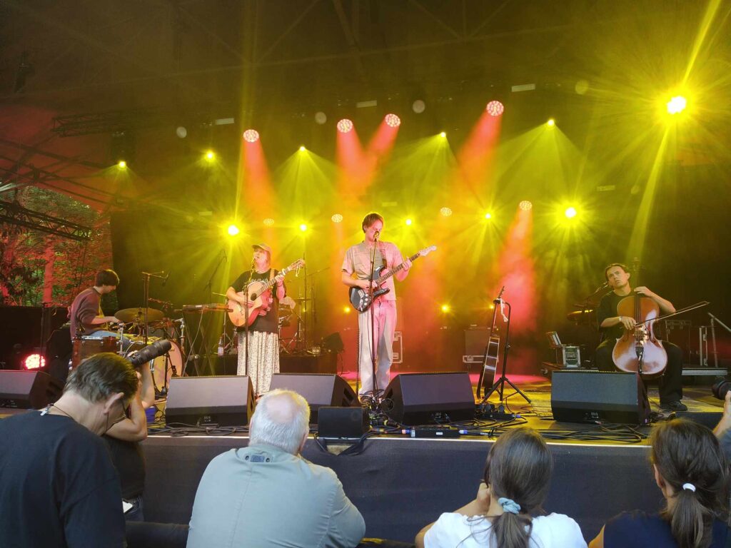 De band had slechts een half uur de tijd om het amfitheater voor zich te winnen. Camille Camille & Sam De Nef kozen er dan ook voor de muziek voor zich te laten spreken en reduceerden de bindteksten tot het noodzakelijke minimum. Een cello, drumkit, twee gitaren en een eindeloos arsenaal aan prachtige vocale harmonieën kenmerkten de zeven nummers van het kwartet en die kunnen wij best smaken. Echte hoogvliegers bleven misschien wat uit, maar met nummers als Strangers en Waving lieten ze zien dat ook zij hun plaats op het podium van OLT Rivierenhof verdienden.