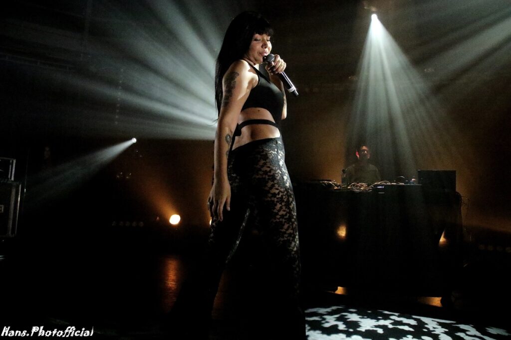 Een erg zelfverzekerde “mixmaster mike” draaide aan de knoppen en liet de diva opkomen op de tonen van een opruiend Rico Rico dat ons omwille van de kreet hard deed lachen. Logisch want dat is een legendarische sketch uit Sluipschutters. Daar hield de vergelijking wel op. De spots op het podium zorgden voor verblindend tegenlicht, maar moesten het toch afleggen tegen de figuur Ms Nina die oogverblindend en heel expliciet gekleed gedurende een klein uurtje de reggaetoon zette. Soms is verwijzen naar foto’s makkelijker om kledij bespreekbaar te maken. Kijk dus vooral zelf. Waar het vijf jaar oude Los Angeles nog dreef op een heus reggae-ritme gingen we al vrij snel vol door in de echte perreo dansstijl.