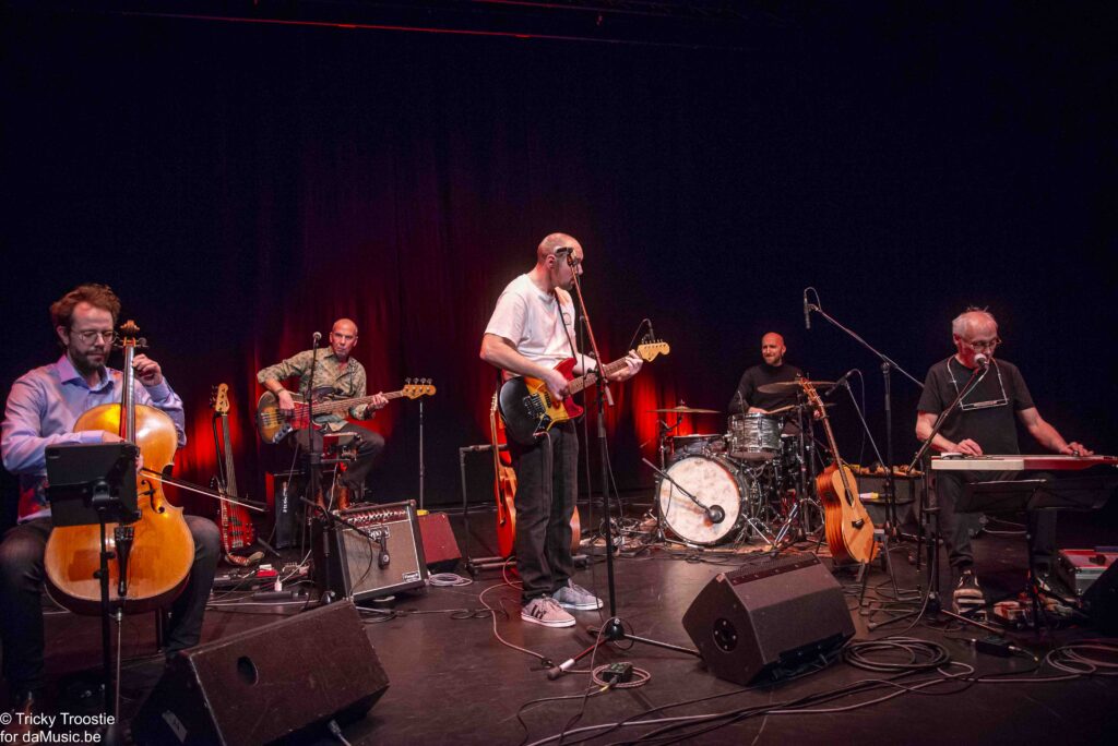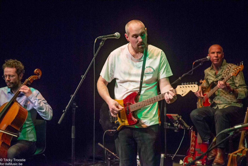 “Toen ik dit liedje schreef, vond ik het een INXS-vibe hebben, maar toen bleek het wel wat op George Michael te lijken, en ik ben niet zo’n fan van die man, maar toch ben ik er uiteindelijk wel blij mee”, kondigde Geerts Guilty Pleasure aan. Niels zette in, en we snapten de verwijzing naar George Michael, de riff heeft wel wat weg van Faith. Gedragen door Geerts riff deed Riguelle wonderlijke dingen op de lapsteel terwijl hij ook de zang voor zijn rekening nam. Harmen Goossens toverde mooie celloklanken tevoorschijn, de ritme-sectie Embrechts-Van den Eede klonk erg hecht.