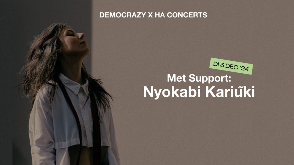 Nyokabi stond alleen op het podium met een backingtrack vanop de laptop. Die track bestond uit geluidscollages (van druppels, dierengeluiden, stemmen… vooral geluiden die ze opnam in haar geboorteland Kenia) die ze ook nog eens vervormde met allerlei effecten. Die backingtrack vulde ze live aan met haar geweldig mooie en flexibele stem. Ze heeft een natuurlijke soulstem waarmee ze de nummers afwisselend zacht en krachtig inkleurde. Soms klonk ze zelfs als een sopraan en moesten we denken aan een soulvolle versie van Diamanda Galas. Op sommige nummers speelde ze op de kalimba waarvan ze het geluid ook vervormde.