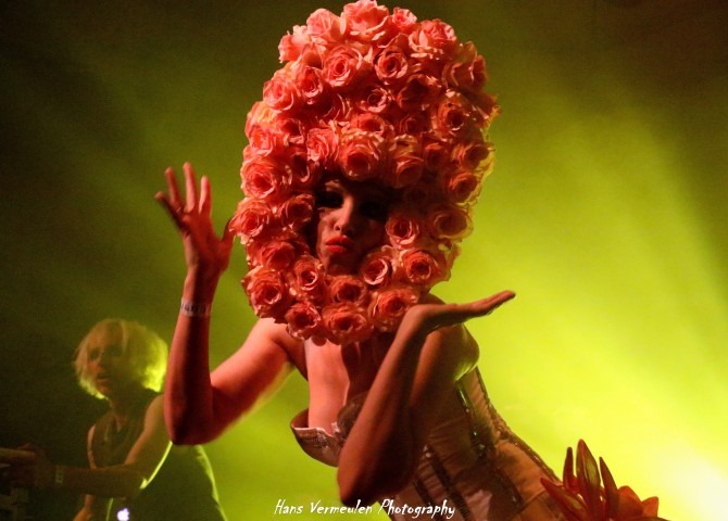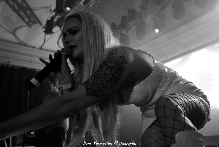 Gelukkig wordt er ook gezongen en daar liet Marieke zich meteen opmerken door zeer toonvast uit te halen op Voodoo-U en Break Me. Ook de grootste fans van Deborah Ostrega werden bij deze overtuigd dat Marieke echt een aanwinst is voor de band. Deborah was in de vroegere line-up vooral een eyecatcher en danseres. Marieke heeft het allemaal: de looks, de stem en de uitstraling. Zo zuigt ze alle aandacht naar zich toe. Zelfs als even later een tweede danseres met een opblaaspop opwachting maakte tijdens het liedje Rubber Doll, bleven de gsm’s Marieke volgen. Ondertussen denderde de act verder, er was veel interactie met het publiek maar toch bleef alles strak op schema (of was het tape?). Opvallend was dat het gespeelde werk haast uitsluitend uit het oude materiaal bestond- de fans vonden het allemaal prima natuurlijk want I Sit On Acid en Let’s Get High brachten ons helemaal in de juiste stemming. Het anthem Worship the Lords-Fuck the rest! zal ongetwijfeld nog een tijdje in ons hoofd zitten.
