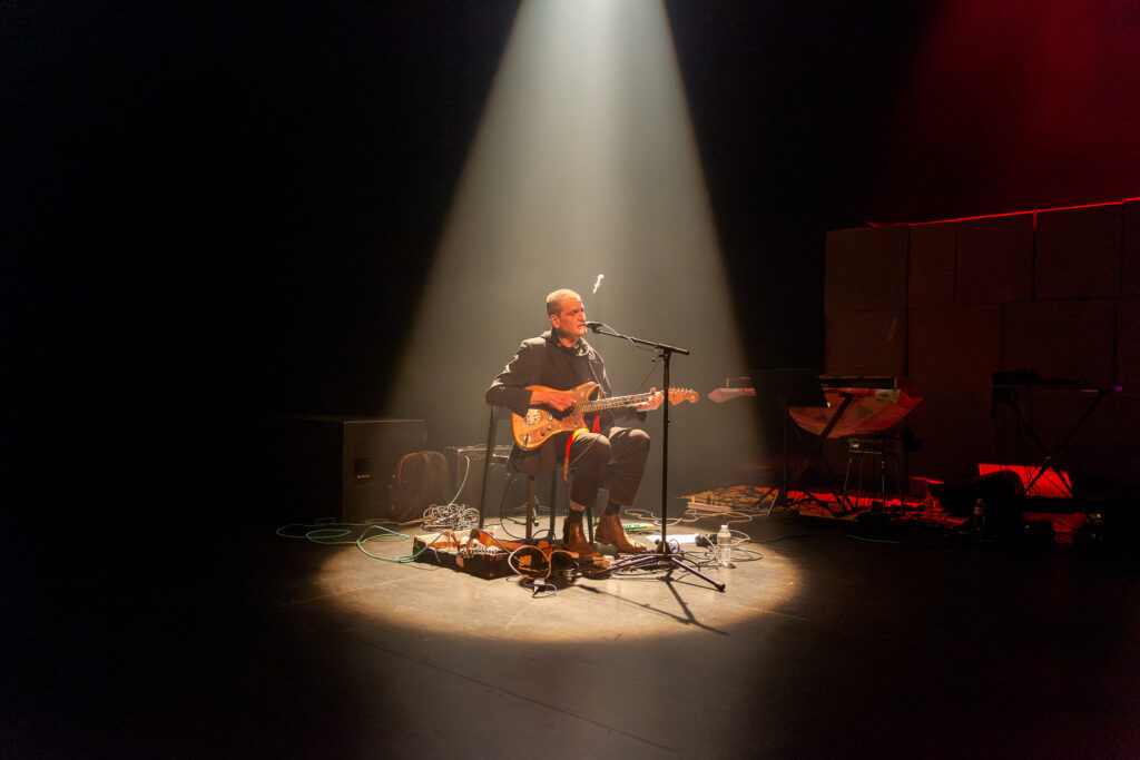 En dan beslist deze man om onder één eenvoudige witte spot enkele van zijn liederen met ons te delen. Hij heeft ze maar uit te kiezen uit zijn gehele repertoire. Hij begeleidde zichzelf op gitaar en enkele nummers op melodica. Het was vooral een sereen optreden, dat stijf stond van de beklemmende eenvoud. Maar hij kan dat op de manier zoals het hoort te worden gedaan. Pas bij het voorlaatste nummer liet hij zich begeleiden door Jeroen Stevens en voor het laatste nummer door de overige bandleden van DAAU.