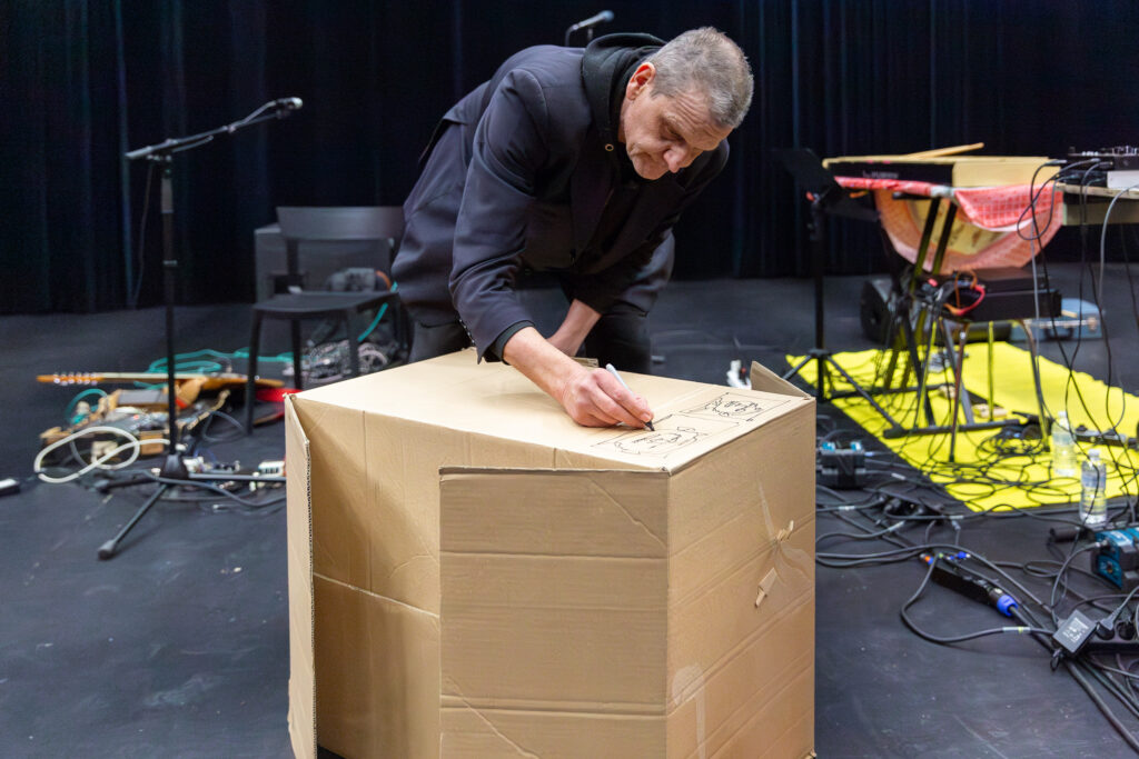 Het was tenslotte ook Jeroen Stevens die aankondigde dat er koopjes te doen zijn in de merch-stand omdat het jammer genoeg het allerlaatste concert was van deze theatertournee. En er een enorme meerkost was om al die spullen van Oostende mee het vliegtuig in te nemen richting Antwerpen. Bij iedere aankoop kreeg je een cd extra en er waren promo’s te doen in de vinyls. Ook de dozen van het decor waren gratis mee te nemen door… mensen die iets kunnen doen met grote dozen. Ze wilden ze zelfs signeren of je kon er Rudy Trouvé iets laten op tekenen.