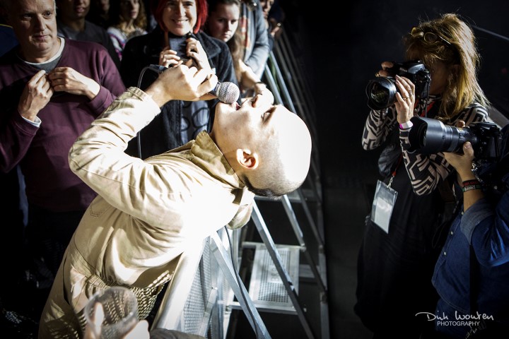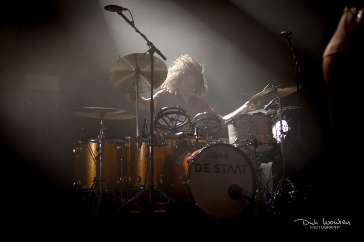 Net voor Shht op tournee vertrok kregen we het nieuws dat Michiel Randsome voor onbepaalde tijd uit Shht was gestapt. James De Graef nam de taak van frontman op zich en Frank Ovier James nam de toetsen partijen over van James. De Graef deed het perfect. Nog voor er één noot was gespeeld, sprong James al het publiek in om iedereen op de voorste rij een hand te geven. Om daarna op blote voeten zijn makkers te vervoegen op het podium en een waanzinnige set neer te zetten. Het publiek was onmiddellijk mee met opener Morning Coffee, zeker op het eind van het nummer wanneer James terug het publiek indook. Ook al duurde de set maar een half uurtje toch zette het vijftal de zaal in vuur en vlam. Het was indrukwekkend, intens en met ongelooflijk veel energie. Shht had de zaal voor De Staat niet enkel voorverwarmd, de Gentenaren hadden de temperatuur tot het kookpunt gebracht.