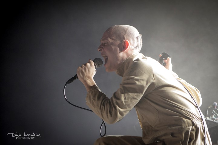 De Staat had de moeilijke taak om dit kookpunt over te nemen, maar dat deden ze met alle gemak. Torre Florim strak in pak, met zijn satanische blik zette Me Time in en de boel was in gang voor een stevige set van een uur en een half. Tijdens de clubtour van het voorjaar werd ervoor gekozen om Bubble Gum te promoten terwijl De Staat er nu voor koos om een soort van “best of” te brengen. Zo kregen we Down Town en het sublieme Input Source Select uit I Con, het bezwerende Peptalk uit O gevolgd door Old MacDonald Don’t Have No Farm No More uit Machinery. Om daarna terug naar O te gaan met Murder Death en een lange dance-versie van Baby.