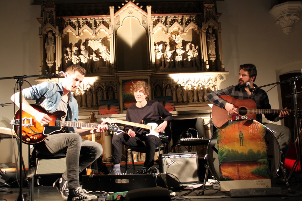 Elke setting vormt een gelegenheid om te performen en de heren van Slow Pilot nemen dit erg letterlijk, van slaapkamer tot festivalpodium, met voltallige of duo bezetting. Slow Pilot laat geen enkele uitdaging onbenut. Nu stond de Melseelse band op een mini podium in de kapel van OC Boerenpoort ter gelegenheid van de nieuwjaarsreceptie van een politieke partij. Het trio, Pieter Peirsman, Maarten Van Mieghem en Sebastian Leye bracht een mix van nieuwe en oudere nummers, maar ook covers en veroverde op minder dan een uur nieuwe zieltjes.