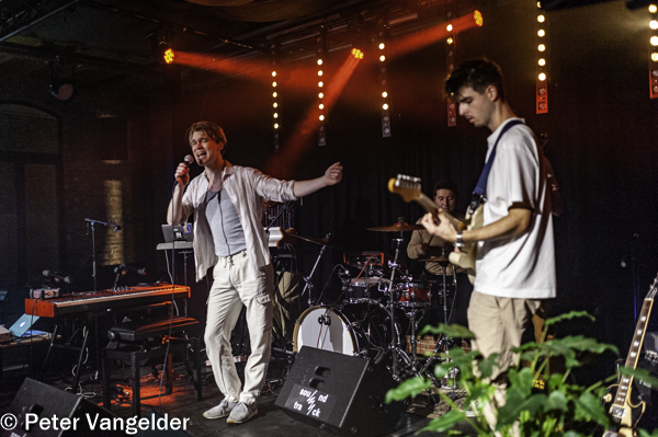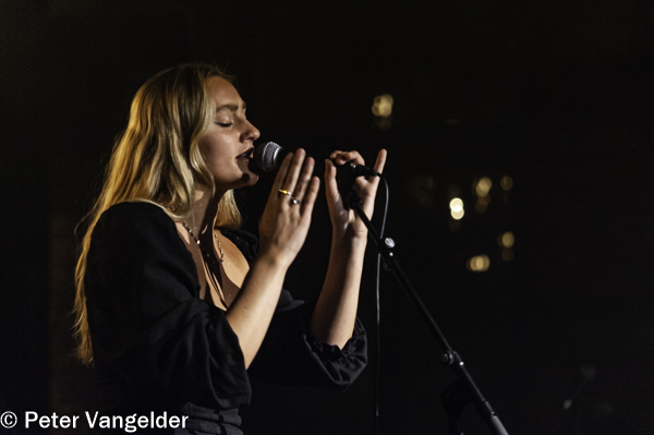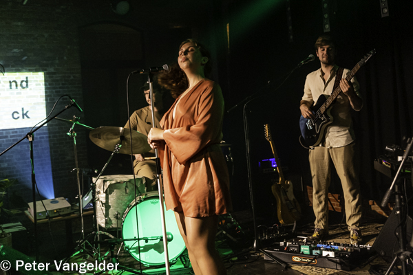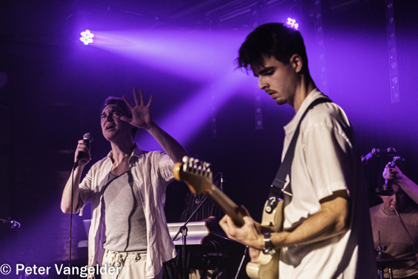 De avond opent met Nebbia, het alter ego van Lucas Nevelsteen. De singer-songwriter, gewapend met enkel een elektrische gitaar, zet zich schrap en vertrekt vervolgens uit de startblokken. Het duurt niet al te lang voor namen als Tamino en Jeff Buckley door ons hoofd schieten als vergelijkingspunt, en dat bedoelen we absoluut in positieve zin. Nevelsteen speelt het ene dromerige nummer na het andere op zijn gitaar en doet dat in combinatie met een stem die even vol en warm is als de betere soulstem en tegelijkertijd ook even breekbaar is als de vocalen van wijlen Mark Linkous en Daniel Johnston. De combinatie lijkt een beetje een tang op een varken te zijn maar wie erbij was, zal kunnen bevestigen dat alle puzzelstukjes wonderwel in elkaar klikten. Hoewel de songs die we gehoord hebben absoluut kwalitatief werk zijn, stellen we ons toch stiekem de vraag of Nebbia onze aandacht gedurende een volledige set zou kunnen behouden. ‘Only one way to find out!’