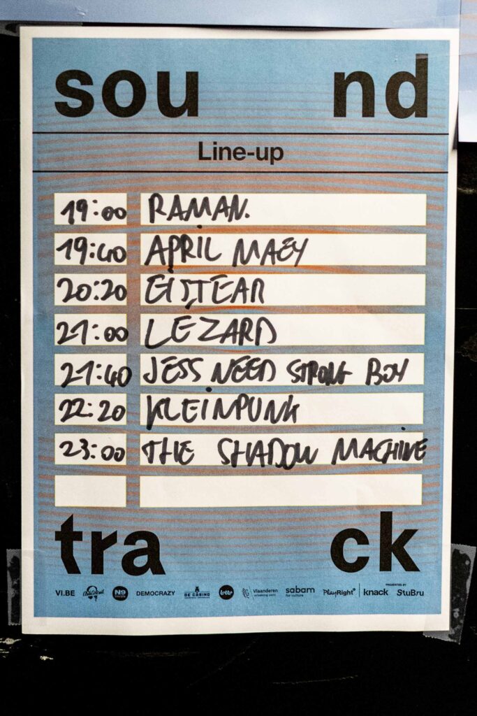 Mogen we tussendoor de loftrompet bovenhalen voor Sound Track en muziekclub N9 die alles strak organiseerden, met bijzondere vermelding voor de puike klank. Geen sinecure wanneer je zeven toch wel uiteenlopende combo’s moet versterken, met wissels van slechts 20 minuten. We hebben het bij veel grotere namen al veel slechter gehoord.