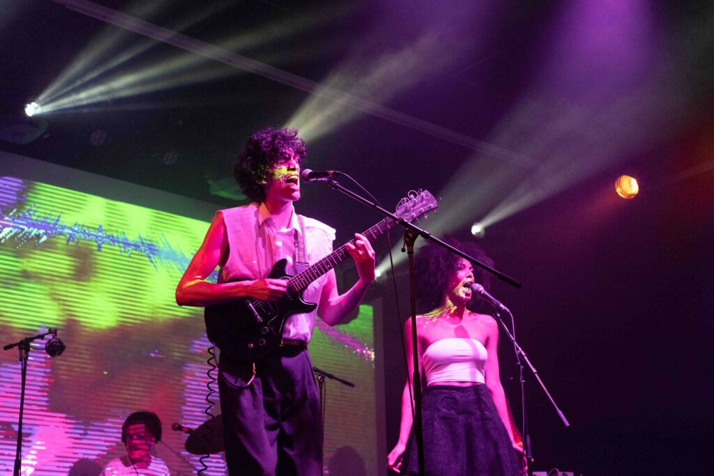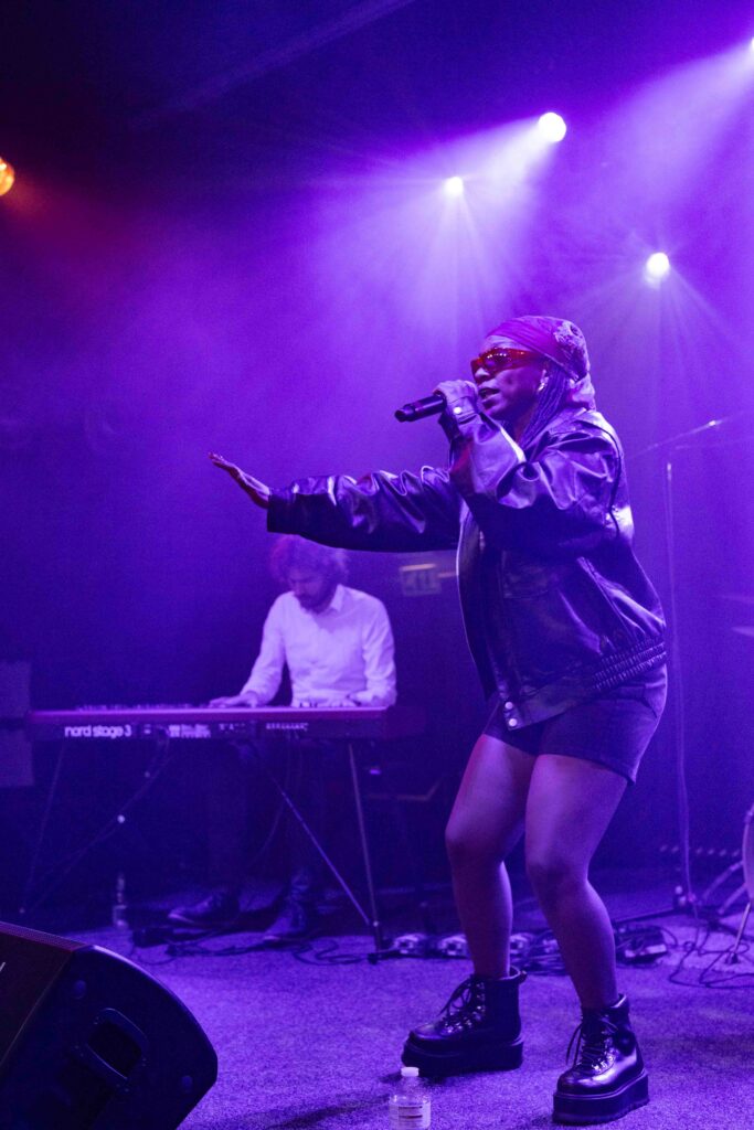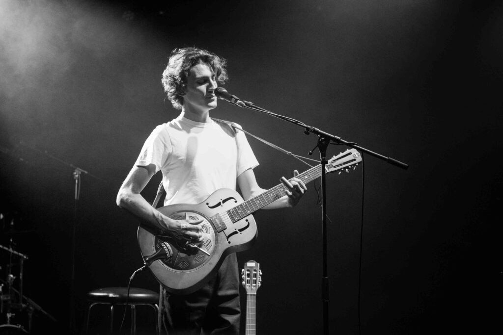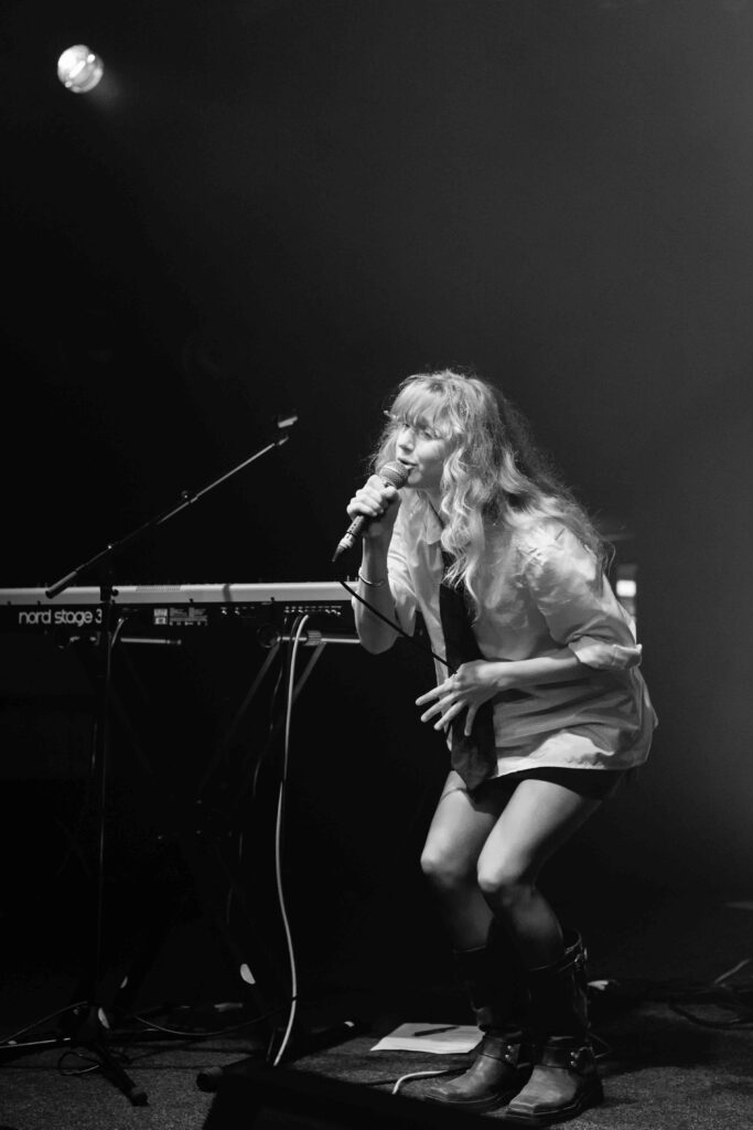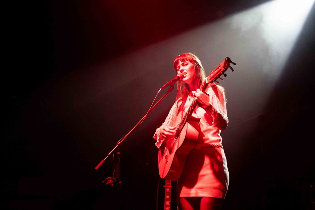 Eistear legde haar ziel bloot op het podium met songs over “het religieus nest” waar ze opgroeide (Mother, “She ruled her kids with an iron face”) en in een ander nummer over haar persoonlijke verwerking van een abortus. Geen zoete koek dus. Ze speelde pré-rock-‘n-roll folkmuziek op gitaar en zong loepzuiver, soms gebackt door een octaver in een pedaal. De eerste twee songs werden begeleid door een medemuzikant met een trommel die ook basgeluiden voortbracht, de laatste twee nummers bracht Eistear solo. We zouden dat omgedraaid hebben. Meezingmomenten zijn hot tegenwoordig, hier was dat wat haalbaarder voor het publiek, in Waltz dat de set afsloot. Maat van drie dus; wie is maat van Eistear? We vonden wat te weinig aansluiting met de muziek van 2023 om dit grote kansen te geven in het pop-rockcircuit. Het folkcircuit lonkt dan weer wel.