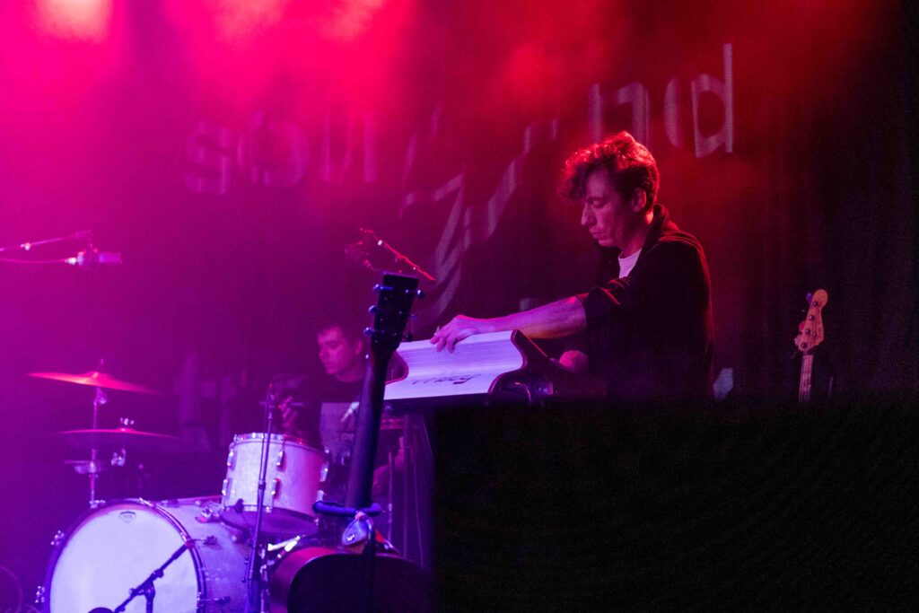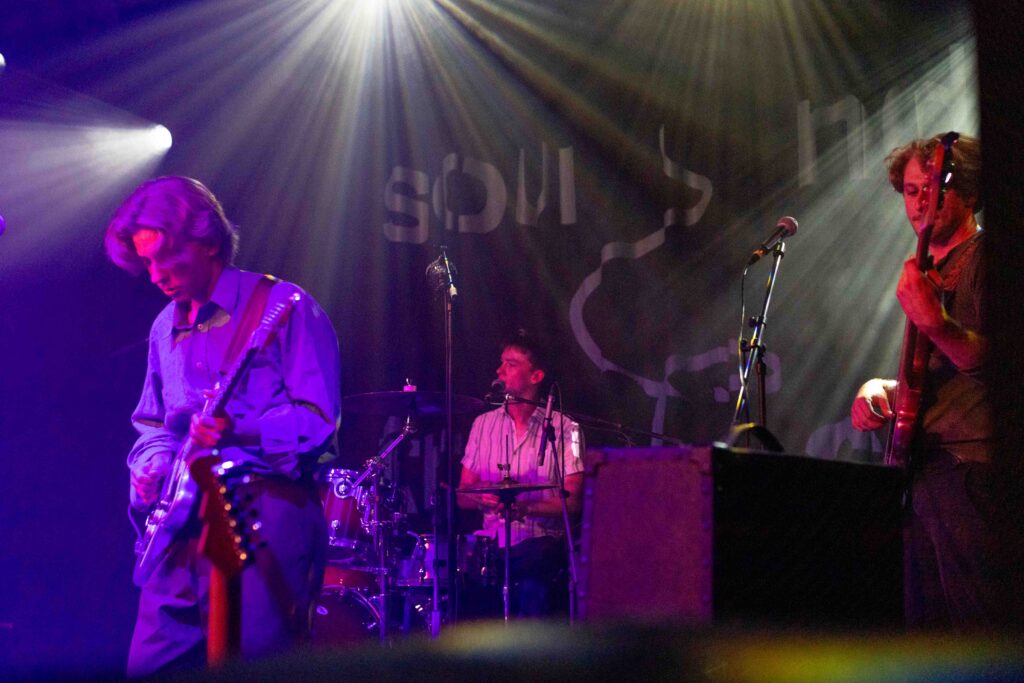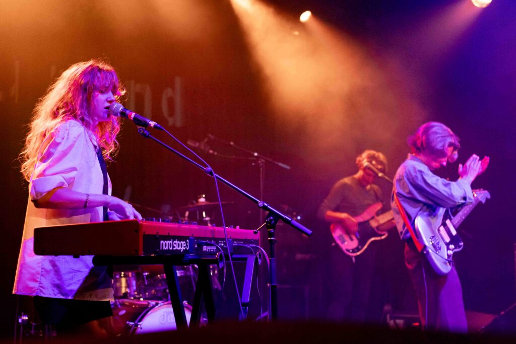 De naam Kleinpunk komt van kleinkunst meets punk, het resultaat is… zoiets, al is de punk eerder punkpop te noemen. Allicht de jongste band van deze avond zo te zien en de eerste (en enige) met Nederlandstalige teksten! Humor ook en een frontvrouw-toetseniste-zangeres (Luna Maes) met onweerstaanbare huig-r èn charme. De set begon met Woef Woef Woef en ging verder met Jeanine. Zeiden we al humor? Leuke teksten, vlotte nummers, een adequate gitarist en veel enthousiasme. (Opvallend toch hoe hoog de kwaliteit is van jonge bands vandaag.) De drummer mocht het vierde nummer aankondigen en – verrassing – ook zingen, het ging over kaarten in de Caravan. Eindigen deden ze met Alles Keert en ze gaven nog eens het volle pond voor een wilde finale. Toffe groep, een soort van Nederlandstalige Gruppo Sportivo, dat hadden we nog niet.