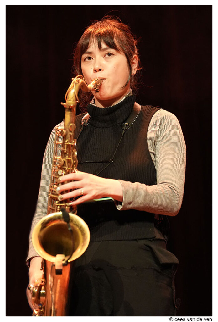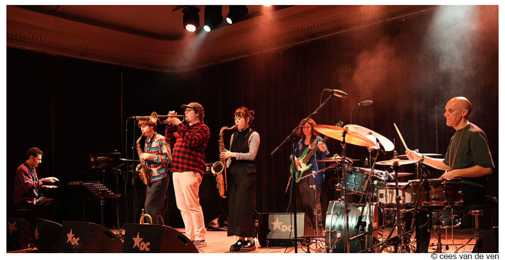 Galland stelde zijn band voor en zette altsaxofonist Yonatan Hes in de bloemetjes, die moest invallen voor Sylvain Debaisieux: “Het is nog maar de tweede keer dat hij meespeelt”. Waarop Morphing Dolphins werd ingezet door de blazers. Wat een gewéldige tune. Blazers in de lead, dan verrukkelijk toetsenwerk van Riahi, de ritmesectie Van den Heuvel en Galland die subliem begeleidde. Wanneer Riahi rustig soleerde, hoorde je Louise en Stéphane nog heel subtiel begeleiden. Magisch mooi. Galland versnelde even, Savoyat gaf een trompetsolo ten beste, waarop het de beurt was aan beide saxofonisten. En wat Shoko Igarashi met die tenorsax deed, de ogen gesloten in volle concentratie, was gewoon fenomenaal.