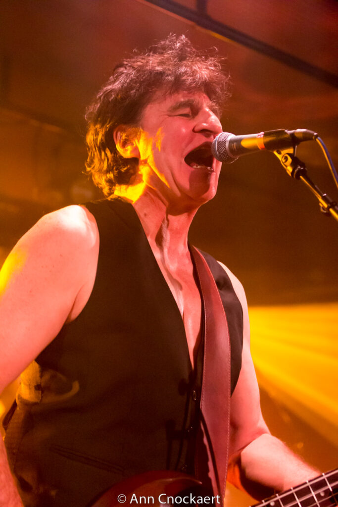 Net zoals bij zijn landgenoot Peter Hook, gaat er geen maand voorbij of je ziet dat de frontman van The Chameleons met zijn band de hort op gaat. Voor de oude fans een godsgeschenk om hun favoriete band regelmatig aan het werk te zien, terwijl anderen dan weer voor het eerst in hun leven de fel besproken postpunkband kunnen gadeslaan. Al duurde het decennia, toch lijkt het erop dat The Chameleons stilaan meer en meer erkenning krijgen voor de invloed die ze op de huidige postpunkgeneratie hebben, en eigenlijk altijd gehad hebben! Dat geldt voor jong en oud, ook al ging het er maar mak aan toe in de clubzaal van de Trix. Tijdens het finale bisnummer Don’t Fall dook Chameleon Vox wel het publiek in, maar voor de rest bleef de reactie van de toeschouwers beperkt tot netjes kopjes schudden.