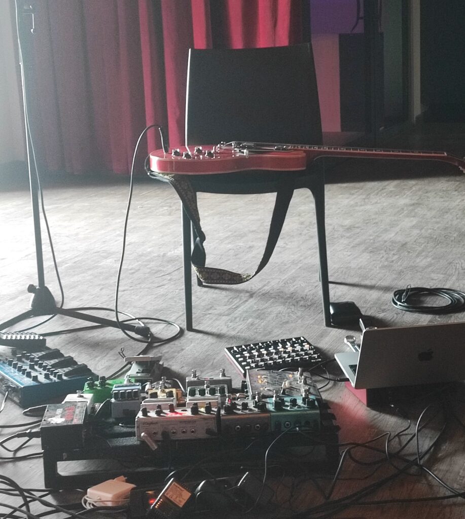 Een drone-klank, Heylen die subtiel aan de snaren plukte, De Backer die voorzichtig en zuinig lucht door de sax blies, zuinige percussie kwam ons tegemoet vanaf de andere kant van de zaal, De Backer die nog meer fenomenale dingen met de sax deed, voorzichtige tonen blies, die eerste zalige gitaar-scape van Heylen die ons tegemoet kwam, een zacht croonende sax.