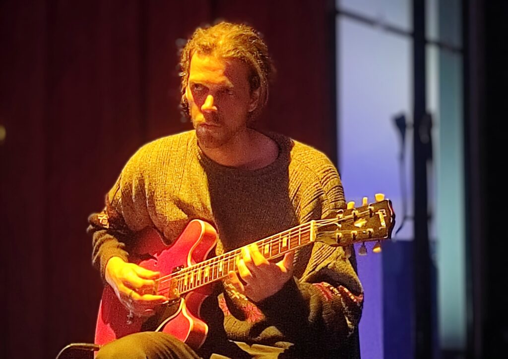 De percussie tikte het geheel weer op gang, terwijl stemmige accordeonklanken door de zaal klonken, waarop Heylen met heerlijke fingerpicking een bijzondere stemmige typisch jazztune inzette, met loepzuiver spel, terwijl ook de sax zich liet gelden, ons samen in de mooie melodie loodsend, waarop deze zou stil dreigen te vallen, ons nog eerst mits Texture, een uitloper van Pendulum met dreigende basklarinet- en gitaarklanken in een beklemmende wurggreep te houden.