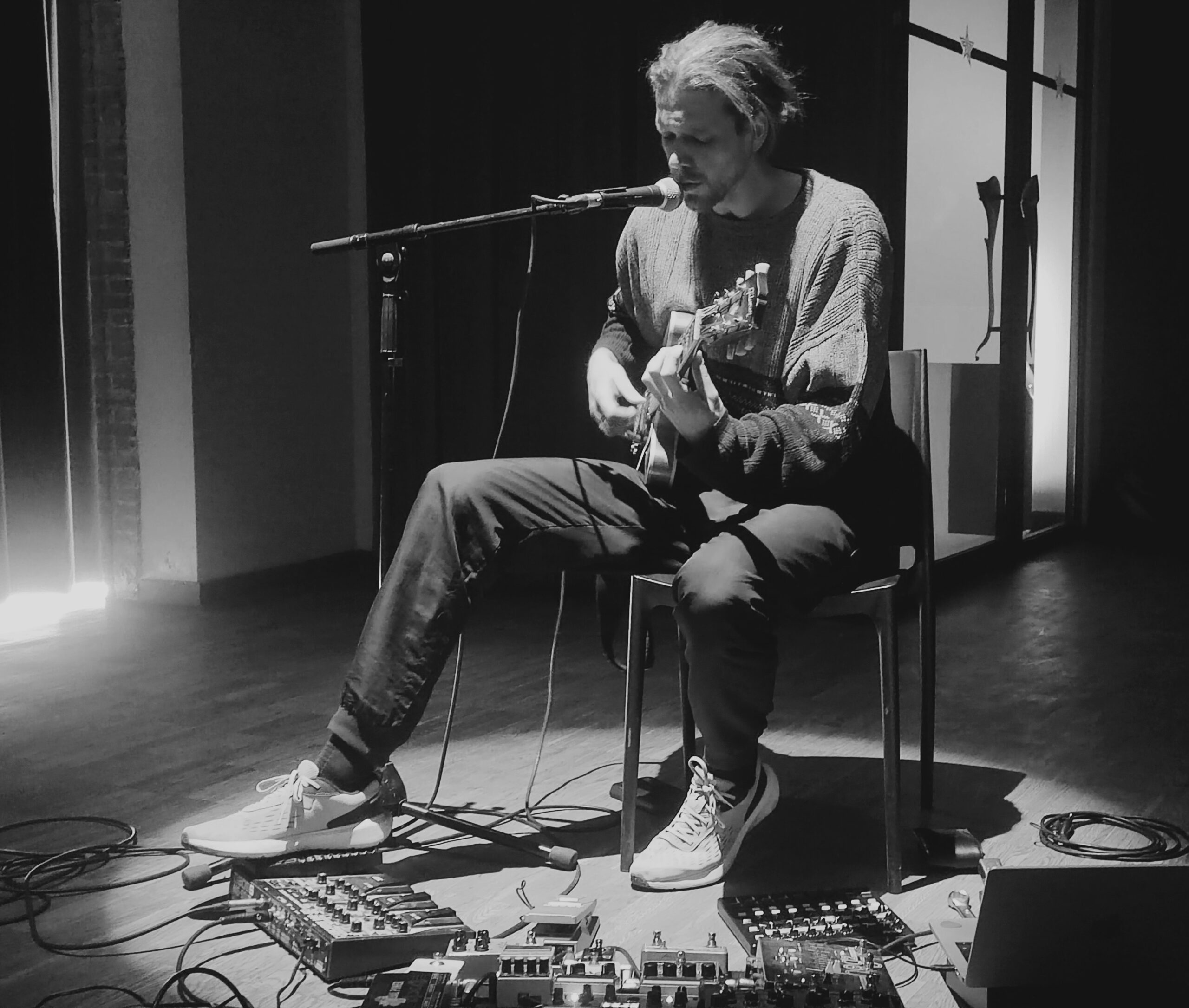 Een drone-klank, Heylen die subtiel aan de snaren plukte, De Backer die voorzichtig en zuinig lucht door de sax blies, zuinige percussie kwam ons tegemoet vanaf de andere kant van de zaal, De Backer die nog meer fenomenale dingen met de sax deed, voorzichtige tonen blies, die eerste zalige gitaar-scape van Heylen die ons tegemoet kwam, een zacht croonende sax.