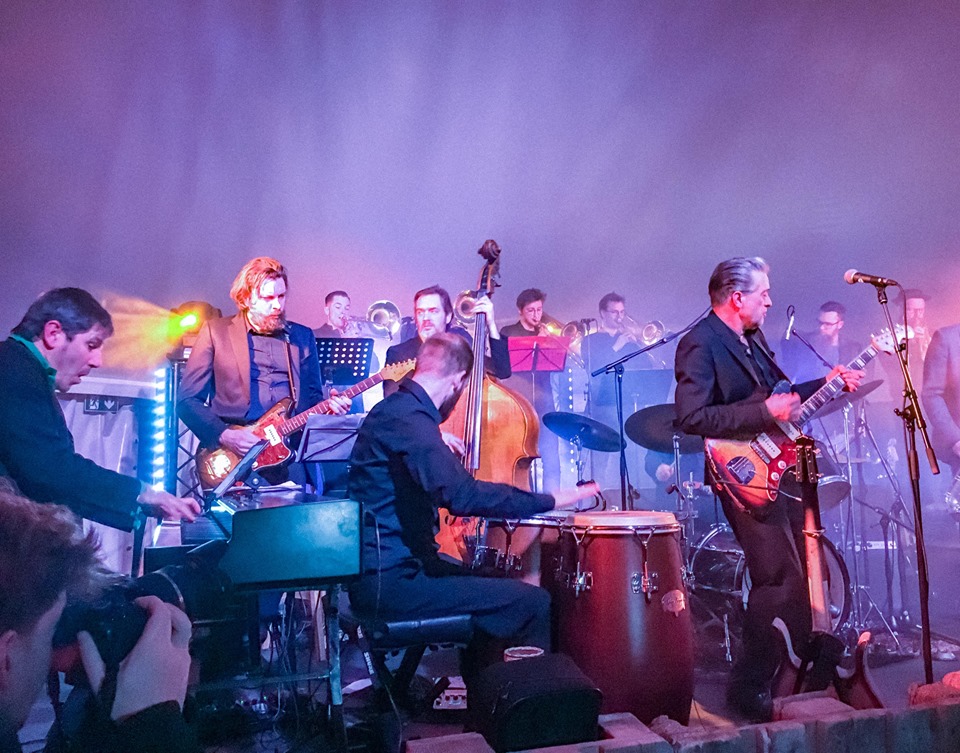 Als we goed geteld hebben en de gastmuzikanten niet meerekenen dan staan ze met tien op het podium. Trompetten, saxofoons, drums, piano, gitaren en een resem instrumenten waar we eerlijkheidshalve zelfs de naam niet van kennen. Wel voelden we meteen dat deze big band vol rock ’n roll zit. Janssens is wat je noemt een tamelijk charismatische frontman, en alle anderen beheersen hun instrument tot in de allerkleinste details.