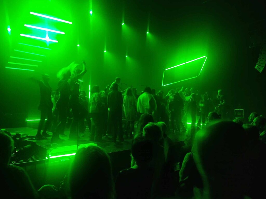 Voetvolk bracht hun, vermoedelijke laatste, voorstelling van Into The Open en we waren blij dat we daar getuige van konden zijn. Het was overigens met deze voorstelling dat Voetvolk ons in september 2022 voor een eerste keer van onze sokken blies en ook deze keer zou dat niet anders zijn. Het podium was, naast een resem platformen, ook voorzien van een hele reeks tl-lampen die het geheel een beetje een clubsfeer van de jaren negentig gaven.