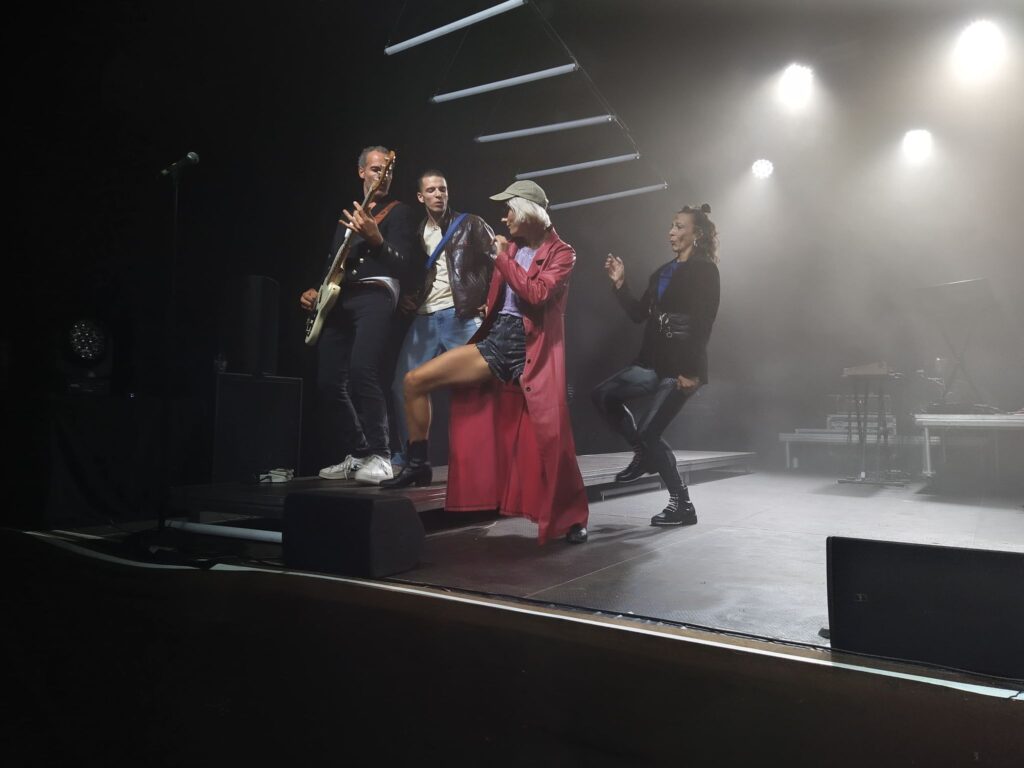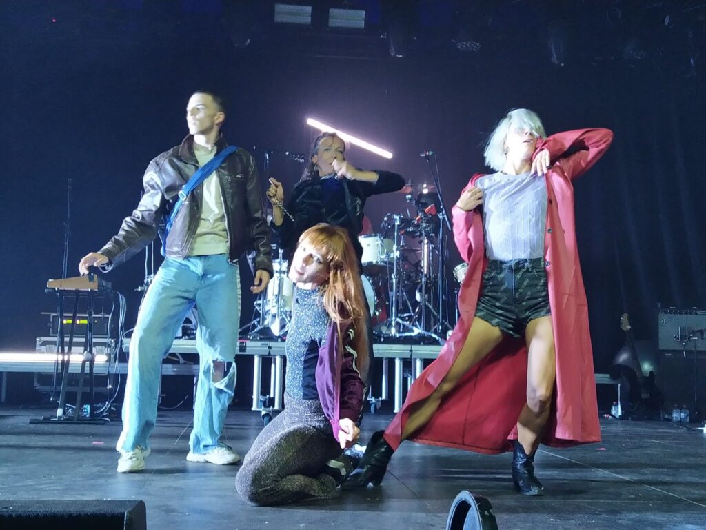 Vanaf de eerste noot en beweging, weten wij niet waar eerst kijken of luisteren. Heuvinck is een echte powerhouse op de drum en het verbaast ons meer dan eens dat zijn drumstel dergelijke percussieve kracht kan torsen zonder in te storten. Bezieler, Maarten Van Cauwenberghe neemt de bas voor zijn rekening en zorgt voor pulserende lopende baslijntjes die de dissonantie van gitarist Elko Blijweert uitbalanceren. Dansers, onder deskundige leiding van Lisbeth Gruwez, gooien zich doorheen de voorstelling tegen de grond; vliegen in het rond en laten ons alle hoeken van het podium zien. Pure liefde wordt afgewisseld met hoekige agressie maar bovenal is het verbondenheid die tijdens de voorstelling regeert. Het valt ons bovendien op dat de performers als één golf lijken te bewegen doorheen de voorstelling en dat ze hierbij meer dan eens gebruik maken van elkaars lichaam om tot één entiteit samen te smelten.