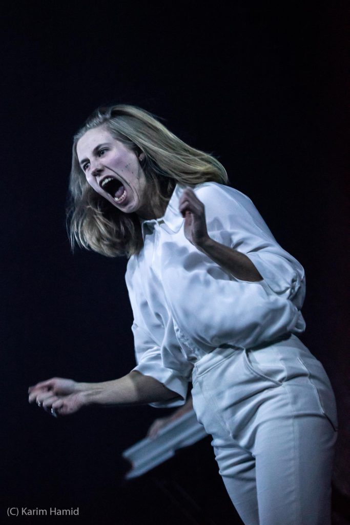Fenne, zoals altijd in een spierwit pak, zocht naar woorden, maar vond er geen, behalve dat “het zot is”. Hoe timide ze vanop afstand lijkt, hoe intenser de frontvrouw op een podium is en het blijft een raadsel hoe deze jonge vrouw haar stembanden nog niet aan flarden heeft geschreeuwd, want iedere noot is er één van intense emoties. Maar Whispering Sons is meer dan die band met die bijzondere frontvrouw (of de boze turnjuffrouw zoals ze op datzelfde podium tijdens de Rock Rally door Luc Janssen werd aangekondigd), achter haar (of beter naast haar) staat een resem muzikanten die hun instrumenten door en door kennen en je daarmee de meest diverse (vaak duistere) hoekjes laten zien.