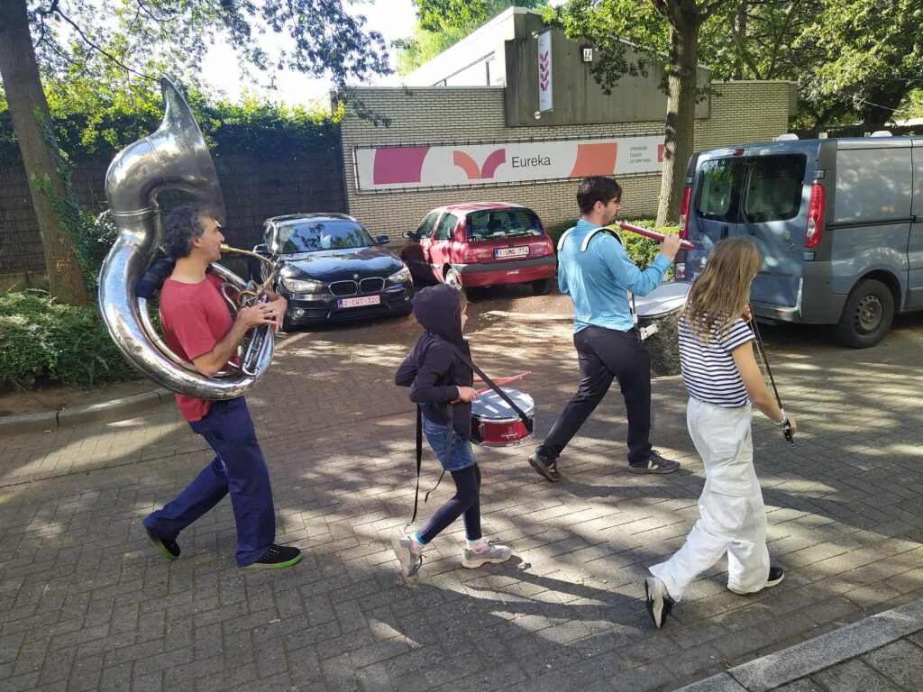 Na deze impressionante samenzang staken we de straat over waar Zwermer Toon Callier ons, gewapend met een basdrum en een melodica, opwachtte. Callier leidde ons doorheen straten die, voor de gelegenheid, subtiel versierd waren met allerhande tekeningen van cactussen, waarna we al snel vervoegd werden door nog drie muzikanten.