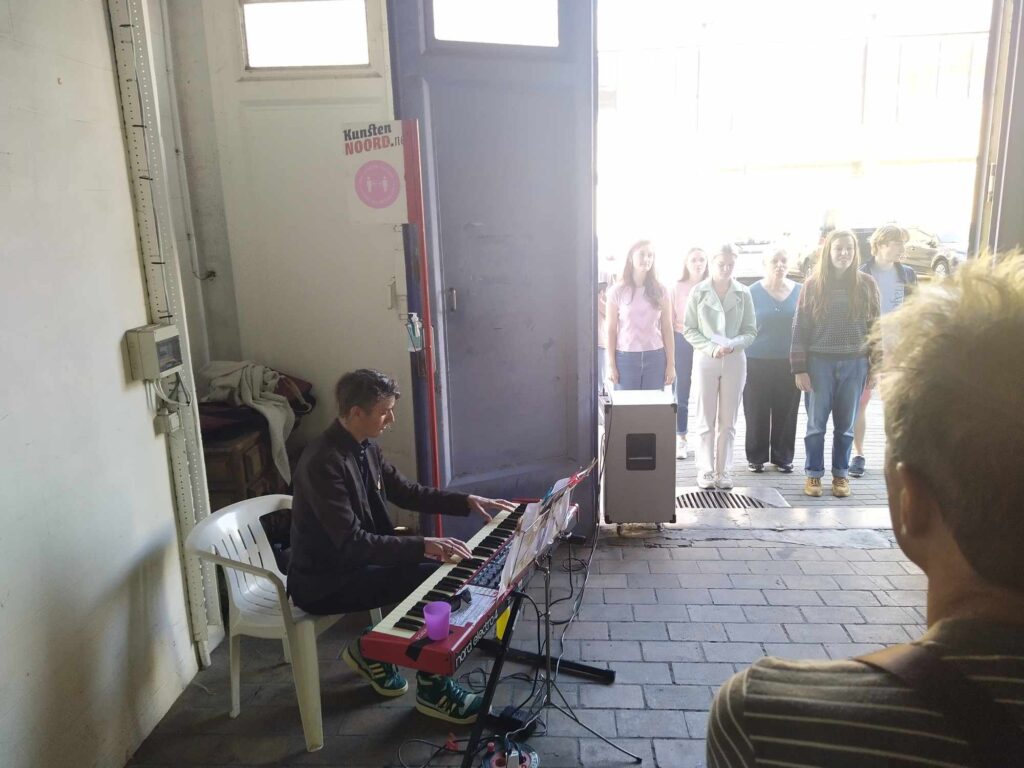 Vervolgens ging het naar de ingang van een binnenplein waar Zwermer Bruno Nelissen zich achter een piano schaarde en een privé concert voor ons inzette. En net toen we dachten dat het niet indrukwekkender kon, vulde uit het niets een koor de ingang van het gebouw en stonden ze de vocalen van Nelissen op indrukwekkende wijze bij.