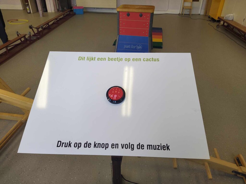 Langs de achteruitgang van het gebouw ging het voort naar een schooltje alwaar we aangemaand werden om, met een druk op de knop, het experimentele geluid te volgen dat ons door de verschillende lokalen leidde, richting de uitgang.