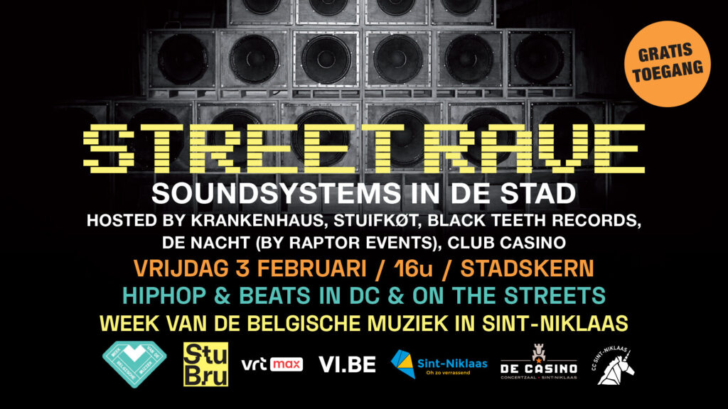 Dit gratis event start om 16u in de binnenstad van Sint-Niklaas met Club Casino, Krankenhaus, Stuifkøt, Black Teeth Records en De Nacht (by Raptor events). Om 18u gaat het feestje verder in De Casino met Unregular en K1D. Vanaf 21u is het de beurt aan Ikraaan, Grizmo, Lyna, Shaka shams en Wawa. Daarna is er een aftershow dj-set met Blck Mamba.