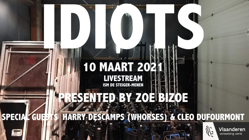 Voor deze speciale gelegenheid krijgen Idiots versterking van Cleo Dufourmont en Harry Descamps. Het geheel wordt aan elkaar gebreid door de onnavolgbare Zoe Bizoe. Tickets voor de livestream kosten €5. Als je het vinyl album erbij wil betaal je €30. Tickets en meer info vind je op deze link.