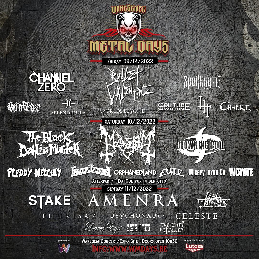 W van W-fest en Waregem. Dezelfde organisatoren voorzien – naast het eigthies/nineties W-festival en de new wave / gothic Sinner’s Day edities – ook de Waregemse Metal Days. Drie dagen voor de ruigste beren en berinnen met een hart voor metal, op 9, 10 en 11 december 2022 op de Expo site. In Waregem dus, wat we misschien wel het muziekwalhalla van West-Vlaanderen zouden kunnen noemen… Hoewel dat misschien iets te utopisch klinkt, ook al wat verleden tijd is en zwaar tekort zou doen aan andere West-Vlaamse muzikale oases als Kortrijk, Ieper of Brugge om er maar enkele te noemen.