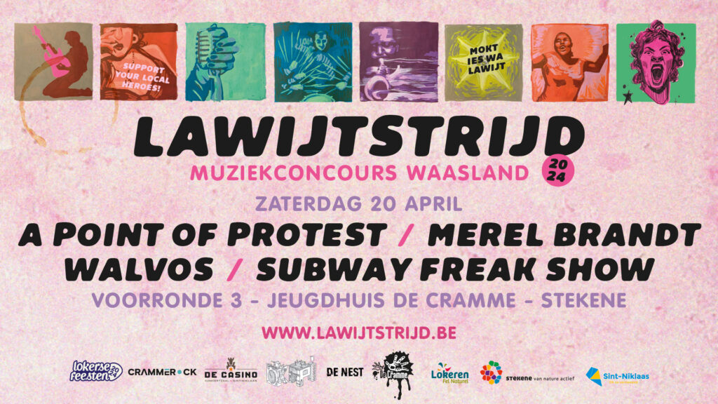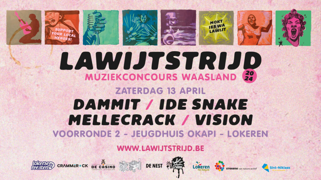 De Casino Concertzaal, Lokerse Feesten, Crammerock, De Nest (JH Den Eglantier), JH De Cramme en JH Okapi presenteren LAWIJTSTRIJD, het muziekconcours voor ambitieuze en getalenteerde muzikanten en bands uit het Waasland.