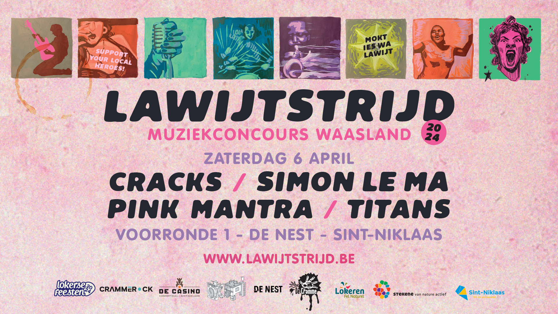 De Casino Concertzaal, Lokerse Feesten, Crammerock, De Nest (JH Den Eglantier), JH De Cramme en JH Okapi presenteren LAWIJTSTRIJD, het muziekconcours voor ambitieuze en getalenteerde muzikanten en bands uit het Waasland.