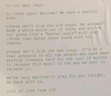 Als regelmatige concertganger valt het smartphonegebruik tijdens concerten mij heel hard op. Ik merkte dat dit gedrag van andere bezoekers mijn eigen concertervaring aantastte. Op Jazz Middelheim voelde ik dan weer het tegenovergestelde: een publiek dat veel minder vaak een gsm gebruikte om o.a. beelden te maken, wat een enorme meerwaarde gaf aan mijn persoonlijke ervaring. In het kader van mijn bachelorproef ben ik dit fenomeen gaan onderzoeken. Na de goed ontvangen smartphonevrije show van The Raconteurs in het Koninklijk Circus afgelopen maandag, vond ik dat dit mocht worden aangemoedigd met nog meer aandacht. – Jana Hufkens