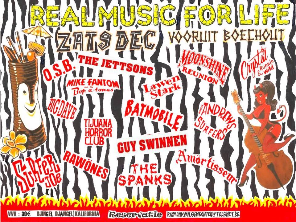 Zaterdag 9 december vindt de derde editie plaats van het Real Music For Life van 13u tot 2u in zaal Vooruit in Boechout. Op dit evenement kan je 15 acts aan het werk zien voor slechts €30. De winst wordt integraal geschonken aan Kom Op Tegen Kanker.