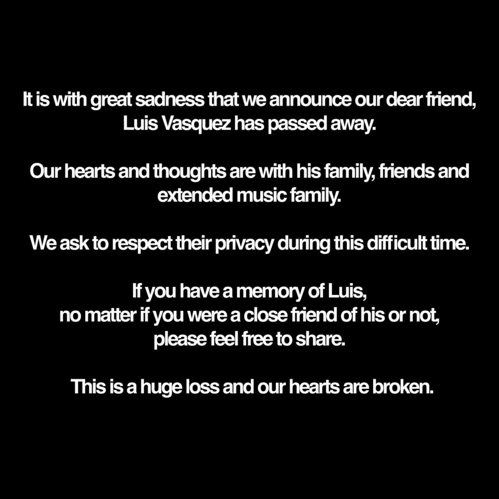 Luiz Vázquez, de multi-instrumentalist en frontman van The Soft Moon, is onverwacht overleden. Dit tragische nieuws is gedeeld op de Facebookpagina van de band.
