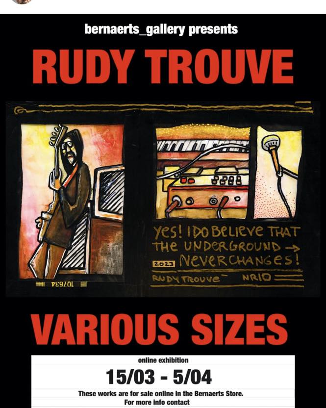 Begin april brengt Rudy Trouvé met de band Dino And The Chicks een nieuwe plaat uit. Eentje van de vele releases die ongetwijfeld doorheen het jaar nog zullen volgen. Op de momenten dat Trouvé niet op het podium staat of in de studio zit, is het veelal zijn dwangmatig teken- en schildertalent dat de overhand neemt en dan ook bij regelmaat van de klok resulteert in heel wat nieuwe, prachtige werken. Zo ook nu.