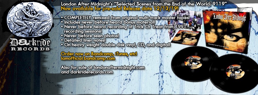 Het label Darkride Records brengt London After Midnight’s album Selected Scenes From The End Of The World opnieuw uit. Met enkele eerder onuitgegeven tracks, enkele radio edits, enkele demoversies en volledig geremastered, is Selected Scenes From The End Of The World: 9119 een album dat gerust naast de eerste editie mag prijken in de collectie van iedere gothrockliefhebber.