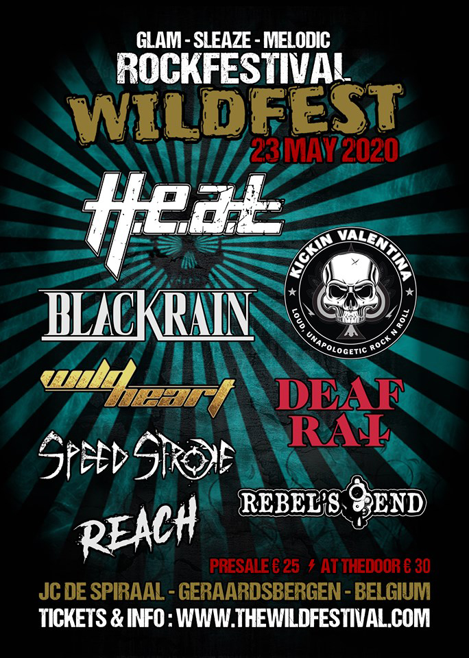 De line-up voor Wildfest 2020 is compleet. Op de affiche van dit glam- en sleazerockfestival staan: H.E.A.T., Blackrain, Kickin’ Valentina, Wildheart, Speed Stroke, Deaf Rat, Reach en Rebel’s End.