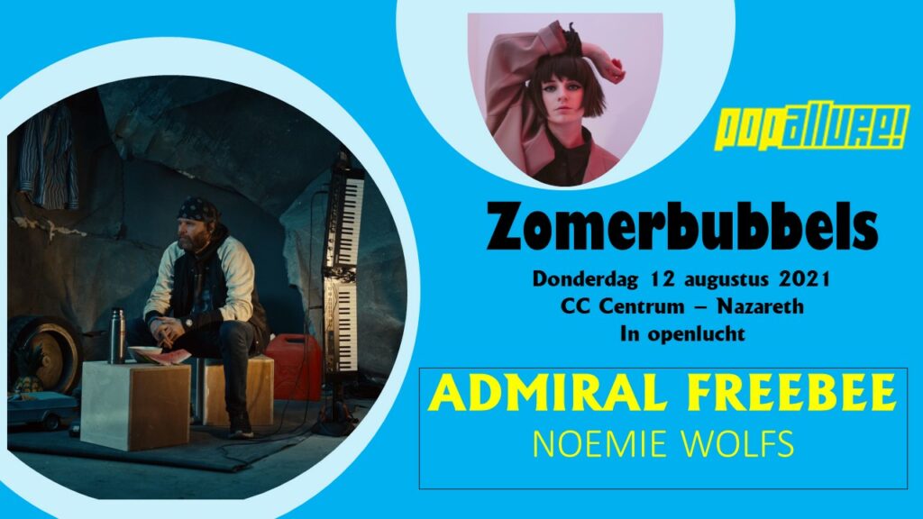 PoPallure gaat weer creatief aan de slag om ons deze zomer te laten genieten van het festivalgevoel met ZOMERBUBBELS. Op donderdag 12 augustus kan je Admiral Freebee en Noemie Wolfs aan het werk zien.