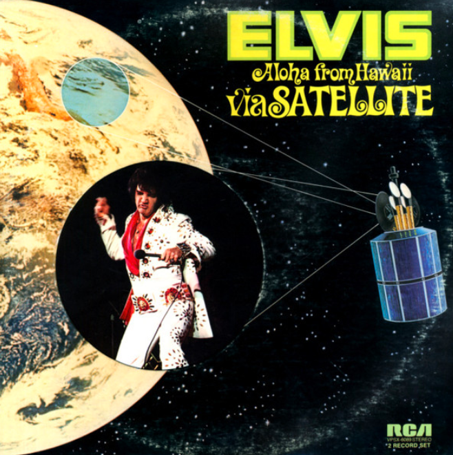 En dan kon de grootste, toen nog levende muzikale artiest niet achterblijven. We hebben het over Elvis Presley. Het idee kwam van zijn manager annex bloedzuiger Tom Parker, die het bezoek van president Nixon aan het China van Mao in 1972 – ook al multimedia – goed in zich had opgeslagen. Waarom Elvis niet via satelliet in elke huiskamer brengen?