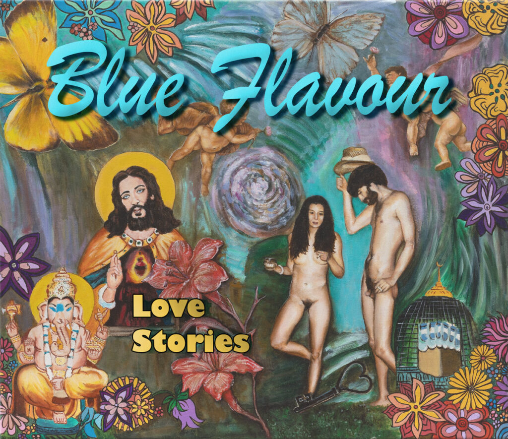Ze hebben er net hun ep-release in Trefpunt (18/3/2023) opzitten. Op de cover van hun Love Stories – die op Valentijn uitgebracht werd – zien we Ganesh (de hindoeïstische god met het olifantenhoofd, de beschermheilige voor reizigers) naast Jezus Christus staan en Adam die zijn hoedje afneemt voor de naakte Eva, in een psychedelisch kleurrijk decor met seventies flowers en rondfladderende cherubijntjes. This is love! Van alle tijden, religies en werelden.