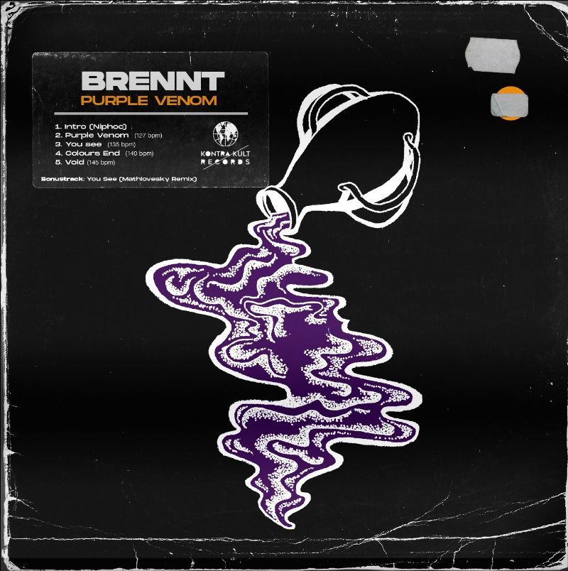 Brennt, de muzikale duizendpoot die we kennen van Stake, Raveyards,.. heeft duidelijk niet stilgezeten de voorbije periode. In april verscheen al zijn eerste ep Templation Islands. Een mooi mini-album met vier elektronisch gemarineerde rave-tracks. Hij surft op dit elan verder en brengt Purple Venom op de markt. Zes gloednieuwe nummers op het nieuwe Gentse Kontra Kult Records, waaronder een remix van Mathlovsky.