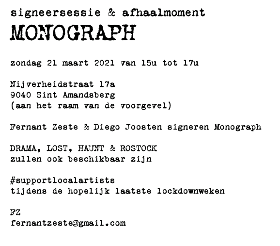 Met Monograph zet Fernant Zeste zijn talent en instrument in de kijker. Laat je onderdompelen in de wijdere range van sferen die hij op dit aankomende album met zijn authentieke gitaarspel neerzet. Het album verzacht en doet gedachtengangen vertragen. Hoewel we de melancholie van de blues steeds ergens wel lekker bleven proeven. Monograph verschijnt op 19/3 digitaal en op cd en kan je reeds voorbestellen of op 21/3 ophalen tijdens de signeersessie.