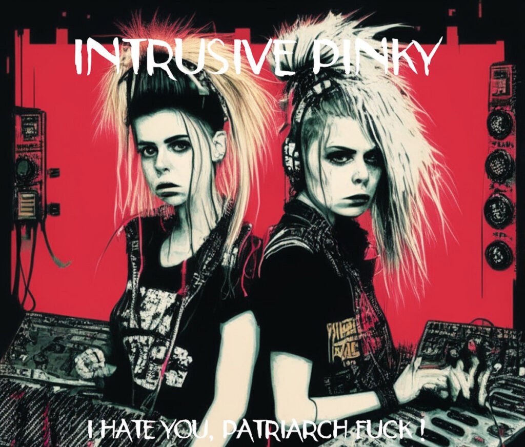 Een meidenduo zouden we kunnen schrijven. Maar dat lijkt ons wat ongepast, als we het over Intrusive Pinky hebben. Ze zien er heerlijk punky uit op de foto’s. Niet pinky… Toch stellen ze zichzelf als volgt voor: “Dit zijn Diana en Jackie (beide namen zijn als woordspeling bedoeld) die spreken. We zijn een meidenband die bestaat uit twee punkmeiden en wat modulaire synths uit Long Beach.”