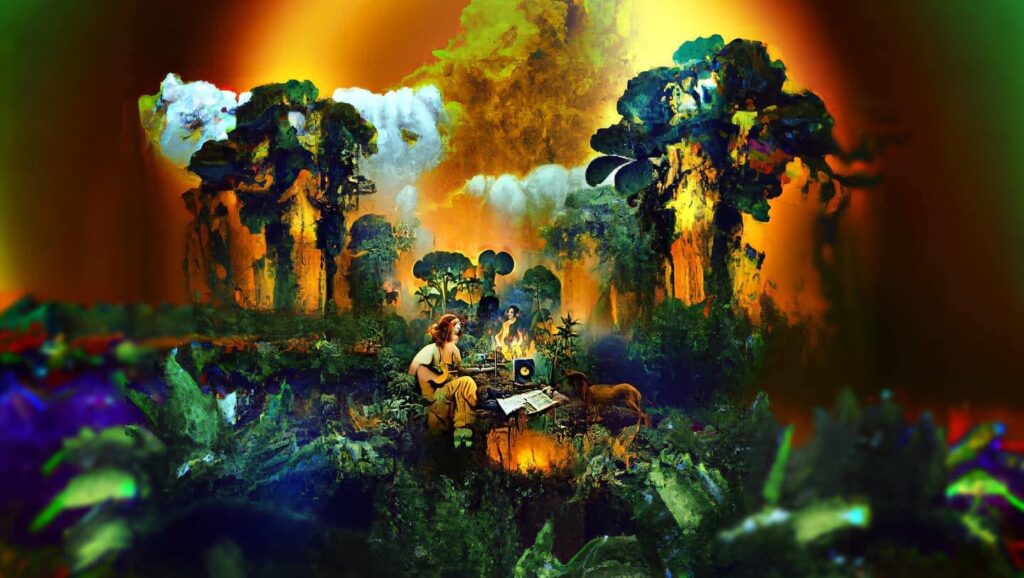 De nieuwe plaat van Jasper Erkens heeft als rode draden religie en artificiële intelligentie. Grote thema’s die Erkens naar zich toetrekt. De songs zijn enigszins retrofuturistisch.