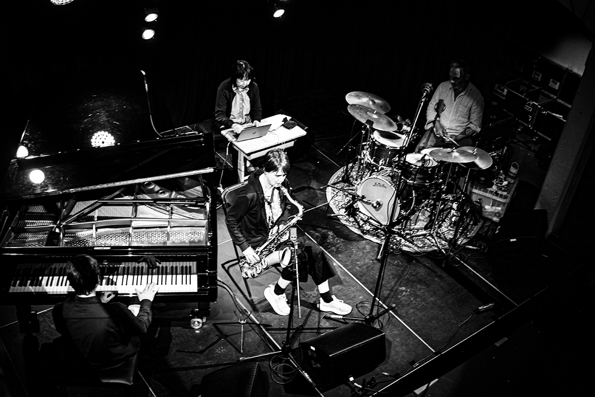 Genoemd naar Io, het lief van de Griekse god Zeus die haar in een koe veranderde, bestaat het ongewone kwartet uit muzikanten met diverse achtergronden. De Japanse elektronicawizzard en klankentapper Ikue Mori ken je misschien van John Zorn. De Duitse Ingrid Laubrock speelt onder meer met gitarist Nels Cline. En pianovirtuoos Bram De Looze speelde eerder onder andere bij Mark Feldman en met Verbruggen in het ensemble Chasing Penguins.