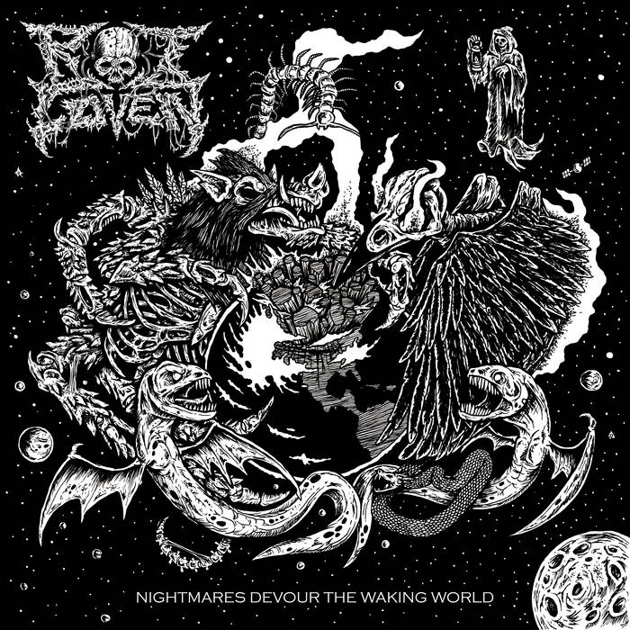Tijdens de Covid-lockdowns kwamen MZ en DD op het idee om een tweemansproject op te richten dat zich zou bezighouden met dark ambient, gemengd met doom metal drums. Gaandeweg kwamen er echter basgitaren, gitaren, noise elementen en vocalen bij en vanaf dan was Rot Coven pas echt een verpletterende superkracht. In augustus smeten ze het tweeluik Nightmares Devour the Waking World op de markt, een doodzieke plaat die continu beweegt tussen noise, drone, industrial, kosmische horror, doom, sludge en death metal. Er is niks vrolijk aan deze plaat maar ze is oh zo heerlijk.