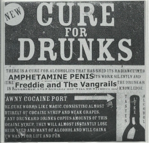 Freddie And The Vangrails leveren drie nummers, die niet op hun langspeler staan, af op hun kantje. Twee snelle nummers, als een Antiseen op speed, die een goed beeld geven van hoe de band ook live klinkt. I Hate It Here en Blame It On The Coffee zijn al gedaan alvorens we door hebben dat ze zijn begonnen. Of zo snel als Freddie zijn pint binnen kapt. Tot hij er een paar teveel binnen heeft en het wel wat trager mag. Daarvoor dient My Dad’s A Fuckin’ Alcoholic. Een Flipper-riff, gebroken glas, een gebroken stem en nihilistische woede. Rauwe punkrock als remedie tegen het dronken worden, zijn, of geweest zijn.
