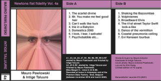 Dat de samenwerking tussen Intige Taluure en Pawlowski vlot liep, lijkt een understatement te zijn. Het geproduceerde materiaal was goed voor 27 nummers waardoor er voor de gelegenheid dan ook twee cassettes werden gemaakt. Platenwinkel Pick-Up in Heusden Zolder besloot om ook zelf een duit in de creatieve, en bovendien ook metaforische, zak van de heren te doen en een heuse vinyl te laten persen van deze schitterende samenwerking. Op de vinyl van Newton’s Flat Fidelity vinden we, naast negen nummers van de cassette-release, ook twee bonustracks terug. Misschien dat je dan toch maar zowel de vinyl als de cassettes in huis moet halen. Hieronder volgt alvast een bespreking van wat je op de vinyl kan terugvinden.